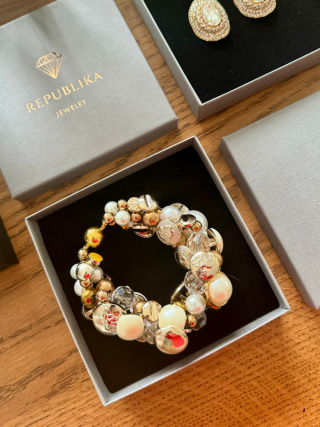 Naszyjnik w stylu vintage, ręcznie wyplatany z dużych złoconych guzików.